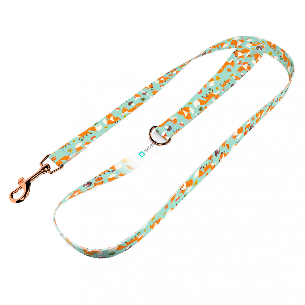 April&June Róka mintás zöld póráz rosegold karabinerrel