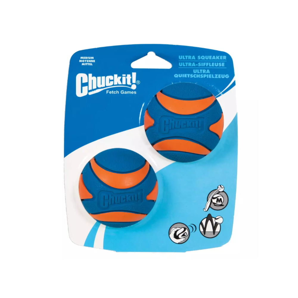 A Chuckit! Ultra Squeaker Ball egy prémium minőségű apportlabda, amely a tartós gumianyagot sípoló funkcióval kombinálja, így még izgalmasabbá teszi a játékot.