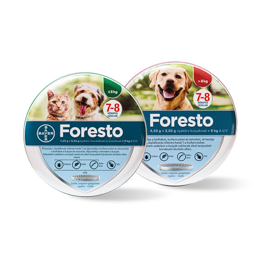 A nyakörv folyamatosan, alacsony dózisokban bocsátja ki a hatóanyagokat, így kutyájának akár 8 hónapon át is védelmet nyújthat a bolhák és kullancsok ellen. A szagtalan és vízálló Foresto® nyakörv egyszerű és akár nyolc hónapig tartó megoldás lehet házi kedvencének a bolhák, kullancsok ellen.